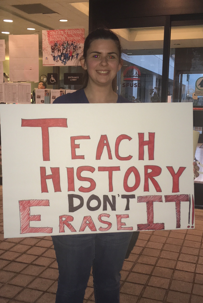 Olivia Ramos graduated from George Washington High School in 2016, and felt strongly that the murals should be kept. “Without teaching ourselves about our history, we will not be able to better ourselves. It is said that those who forget history are prone to relive it. We can’t erase history to suit people’s feelings.”