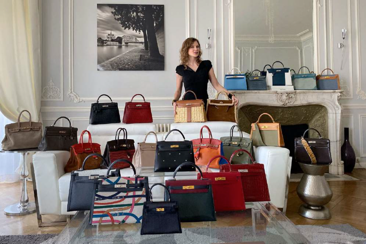 Julia Kovaljova with part of her Hermès handbag collection [Photo credit: Knight Frank The 2020 Wealth Report]