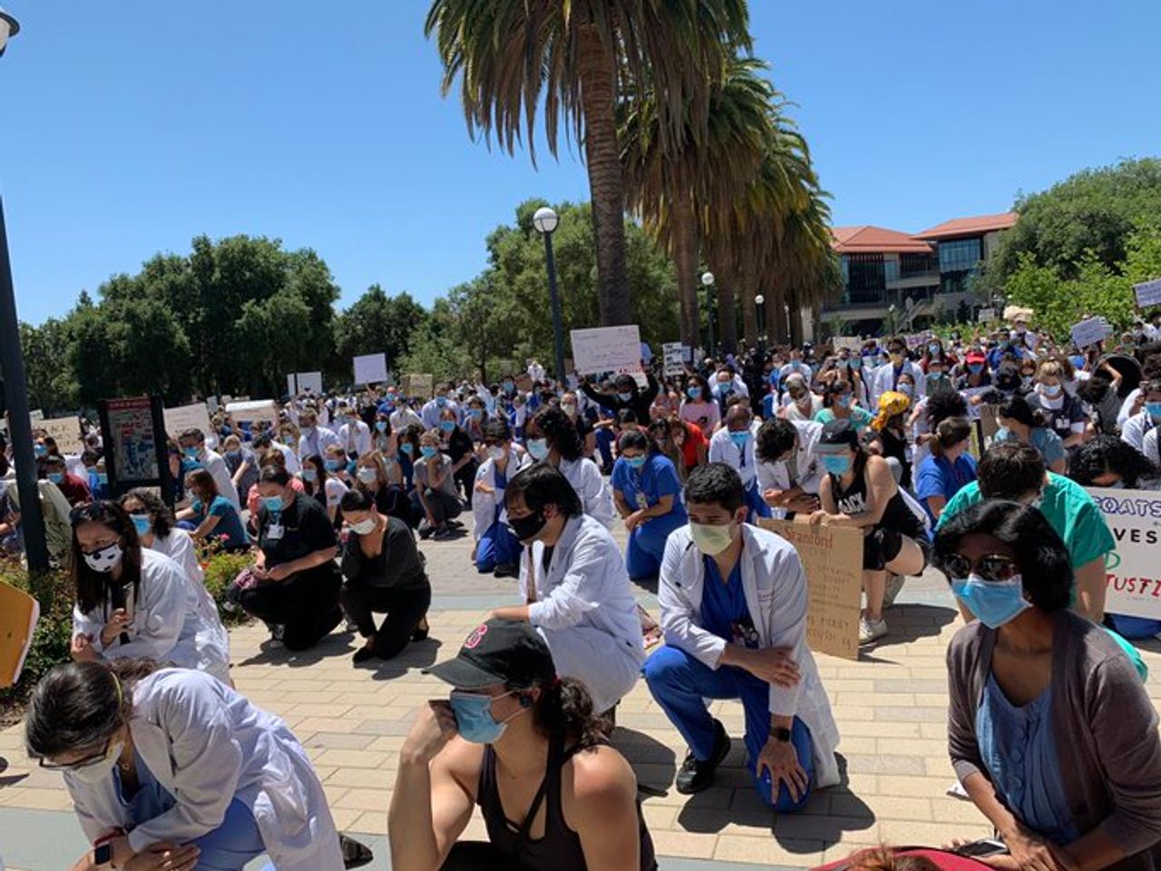 At Stanford, one of the leading medical schools in the world, hundreds of medical students and workers joined a demonstration in which they knelt down for eight minutes and 46 seconds, the time that Minneapolis police officer Derek Chauvin kneeled on George Floyd’s neck. Nearly 1,000 health care workers joined a protest at Indiana University’s medical school, and hundreds joined protests in Chicago, Illinois, and the surrounding area, as well as in Miami.