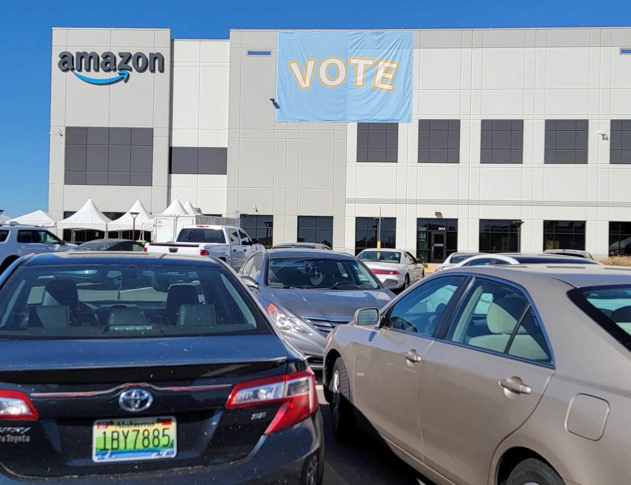 Voting tent outside Bessemer warehouse (credit: WSWS Media)