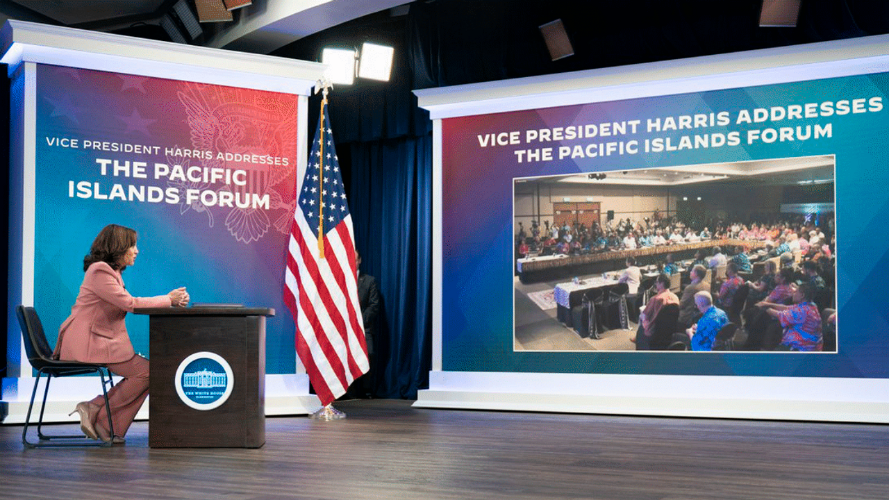 US Vice President Kamala Harris addresses the Pacific Islands Forum (Photo: Twitter/VP)