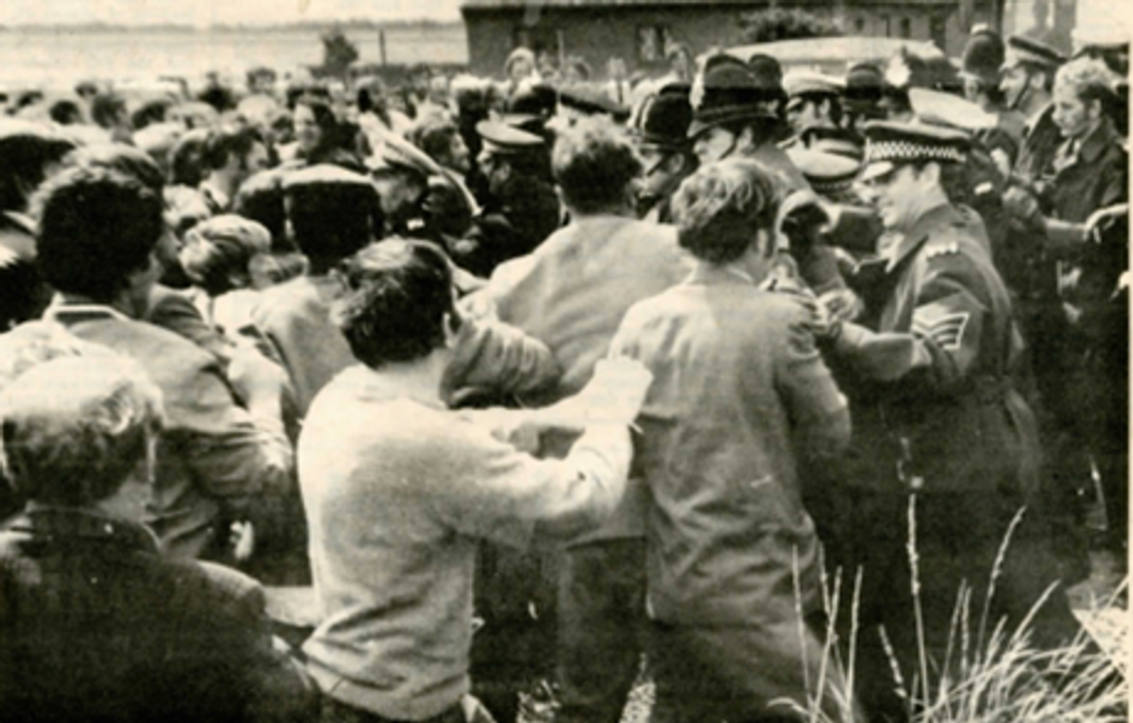 Hordes of police force a tanker through Keadby pickets. Photo source: Workers Press