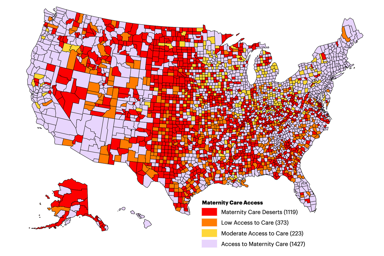 The March of Dimes report paints a slightly grimmer picture than the organization’s last report in 2020. It finds that 36 percent of counties nationwide, largely in the Midwest and South, are “maternity care deserts.” The latest report finds that nearly 16,000 women of childbearing age in more than 1,000 counties have no access to maternity hospitals, centers and providers.