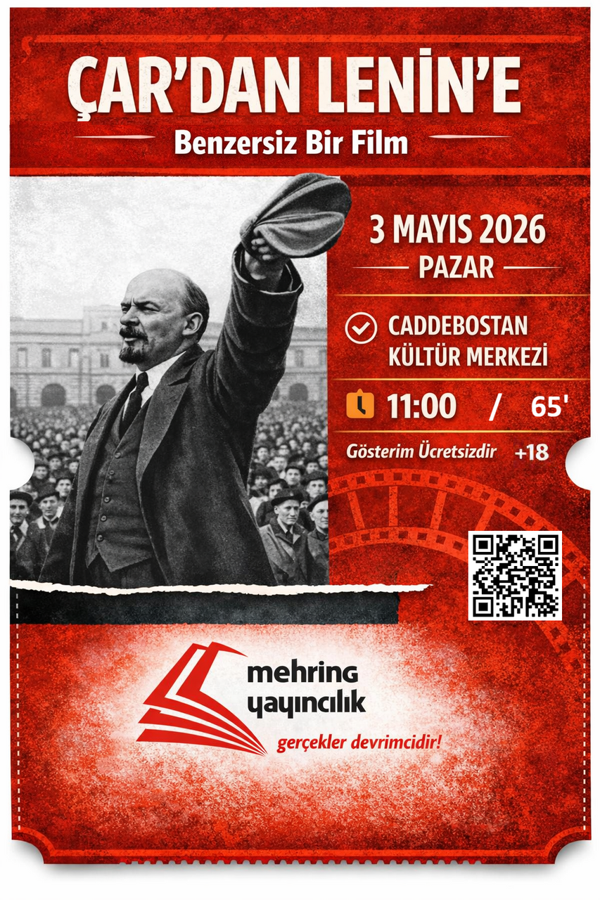 Tüm okurlarımızı 3 Mayıs’taki film gösterimine katılmaya ve Mehring Yayıncılık’tan Rus Devrimi ve diğer önemli konular üzerine çıkan kitapları incelemeye davet ediyoruz.